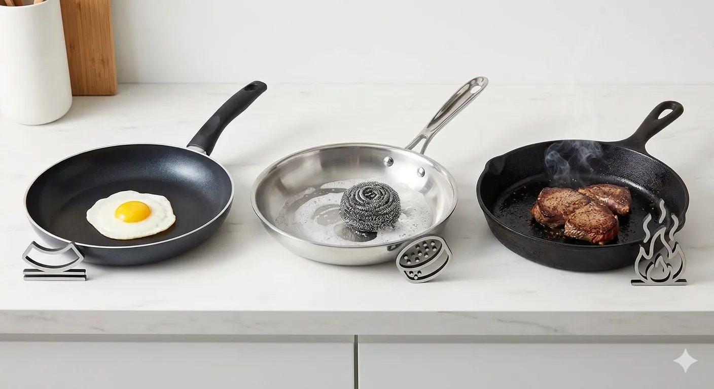 鉄が合わないと分かったら、「何を優先するか」で次の一枚が決まります。ここでは、手入れの少なさ・焼きの強さ・多用途性のバランスで候補を整理します。価格やブランドより、日常で起きる不満が減るかで選ぶのが近道です。