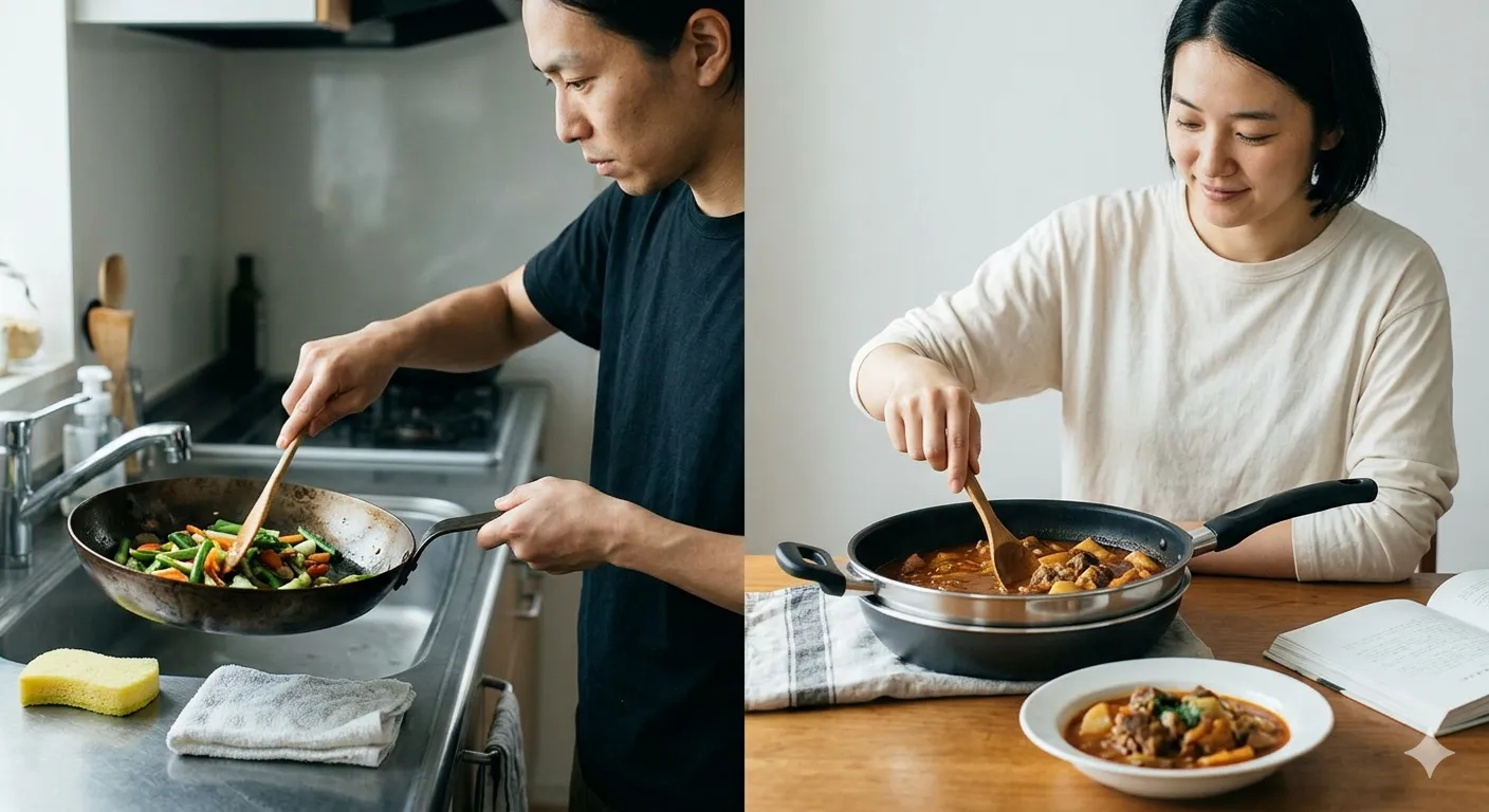 「鉄は一生もの」と聞いて買ったのに、結局使わなくなる原因はだいたい決まっています。ここでは後悔の種を、生活シーン別に分解します。先に地雷を知っておくと、買ってからの修正コストが減ります。