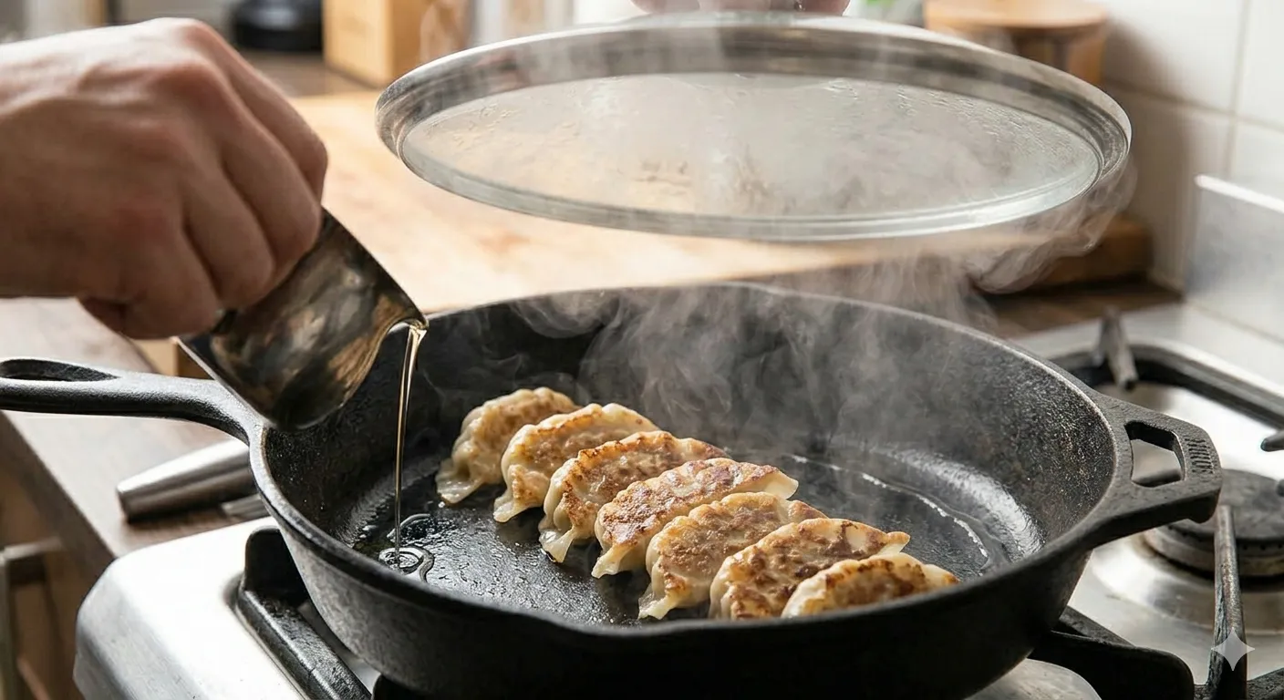- 失敗:餃子の蒸し後に皮が破れる → 原因:水分が残り、油膜が切れている → 修正:フタを外して水分を飛ばし、縁から少量の油を回して“剥がすきっかけ”を作る