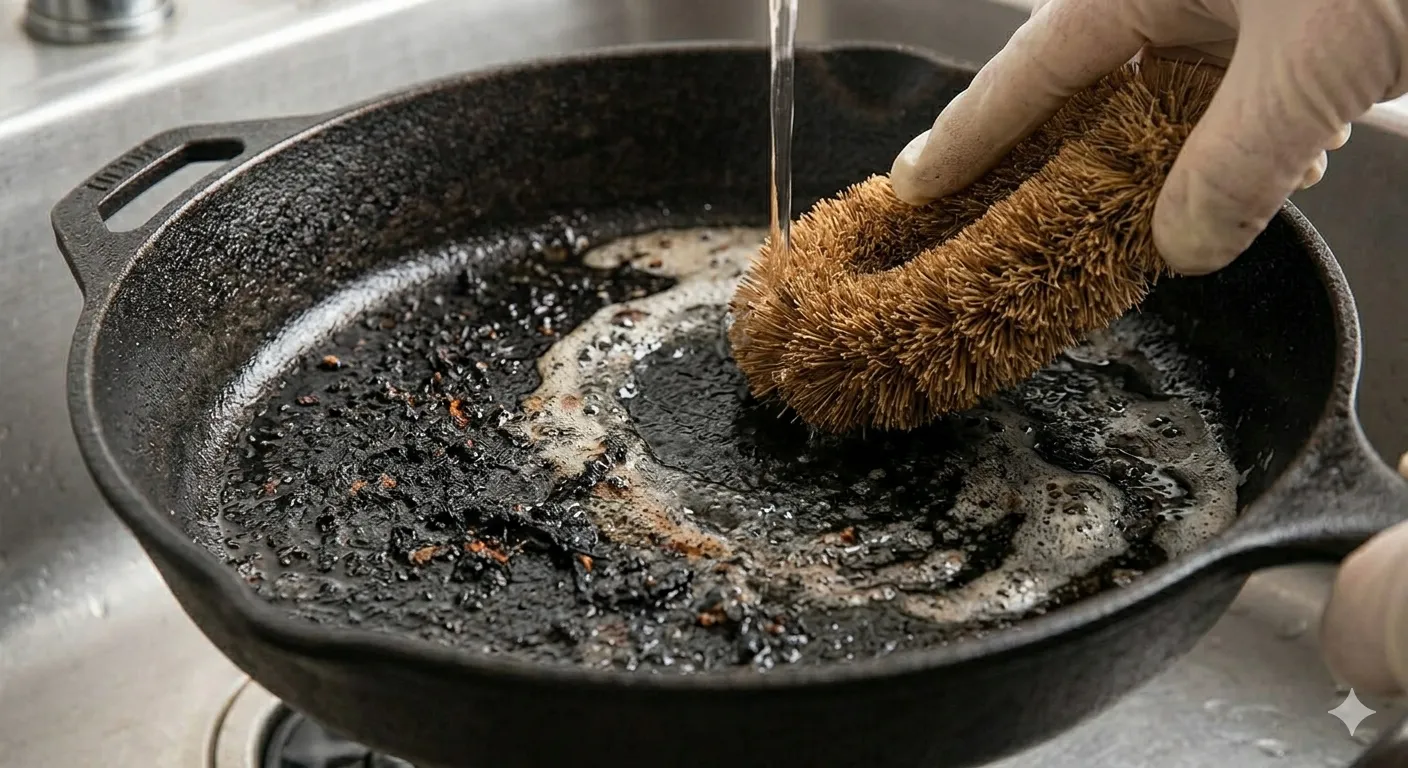 軽度:焦げを落として「洗う→乾かす→薄く油」を戻す
