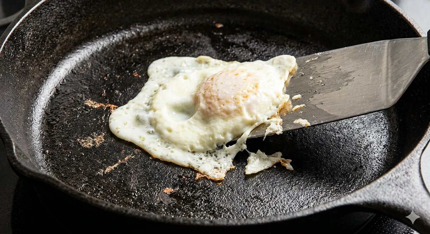 - 失敗:同じ場所だけ毎回くっつく → 原因:薄い焦げ残り/凹凸 → 修正:焦げを落としてから薄く油膜を作り直す(復活手順へ)